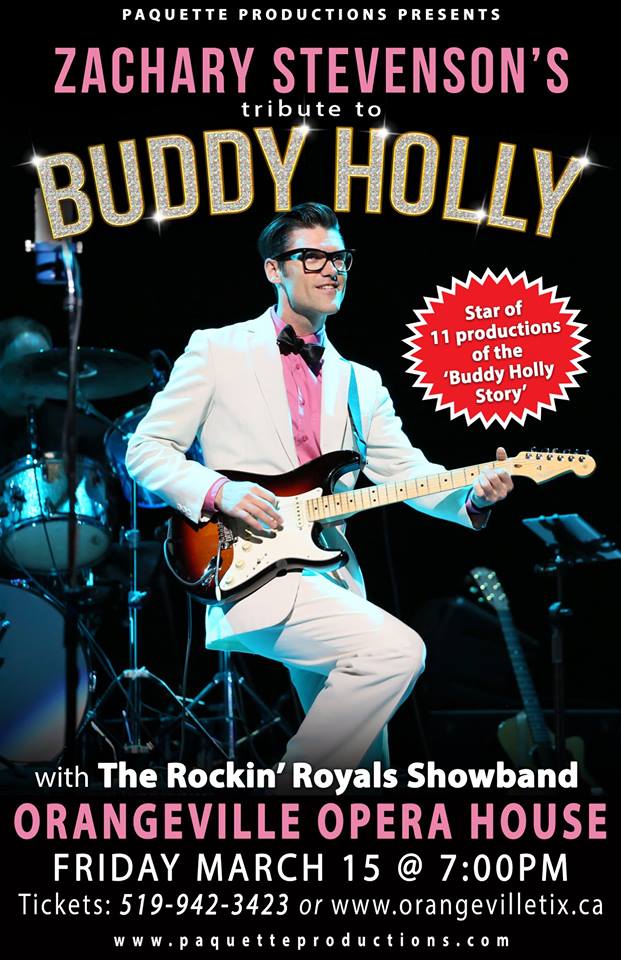 Friday night at the Orangeville Opera House check out a Buddy Holly Tribute. See Vancouver native Zachary Stevenson play the music of Buddy Holly, the show starts at 7:00 pm go to theatreorangeville.ca for more information and show tickets.