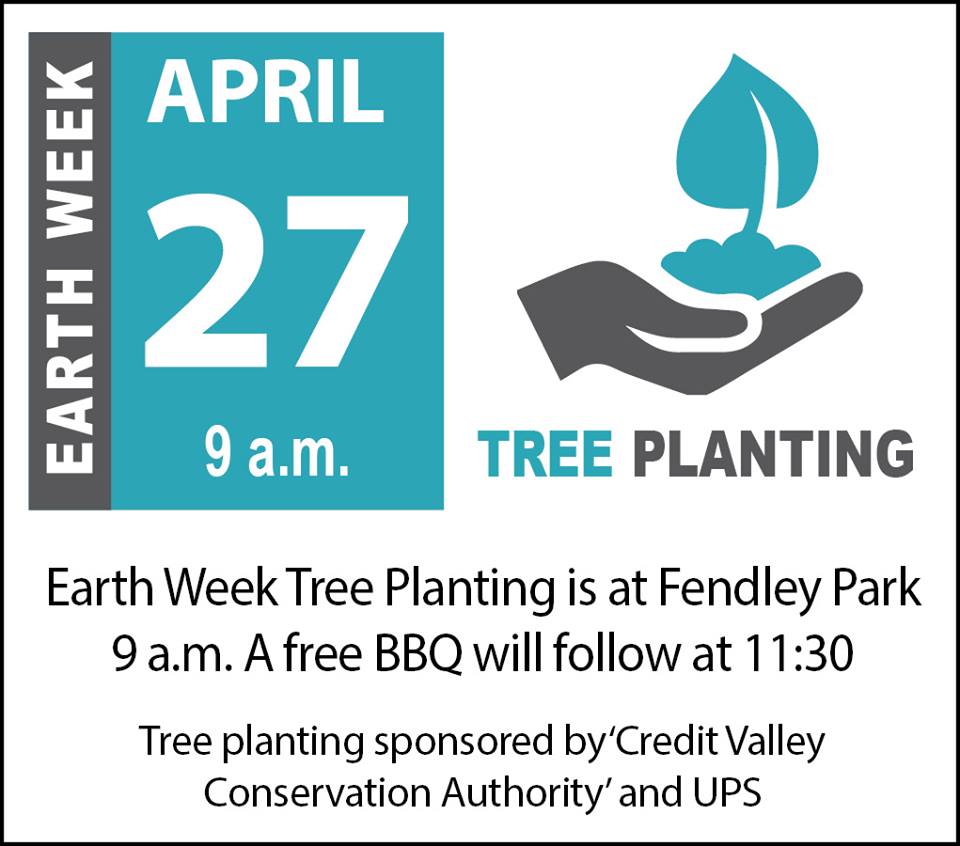 As part of the Town of Orangeville’s Earth Week celebrations, go to Fendley Park, in Orangeville, on Saturday and participate in a Tree Planting, sponsored by the Credit Valley Conservation Authority and UPS. The Tree planting will begin at 9:00 am and will be followed up with a free barbecue lunch for the participants starting at 11:30 am. Go to orangeville.ca for more details about the tree planting.