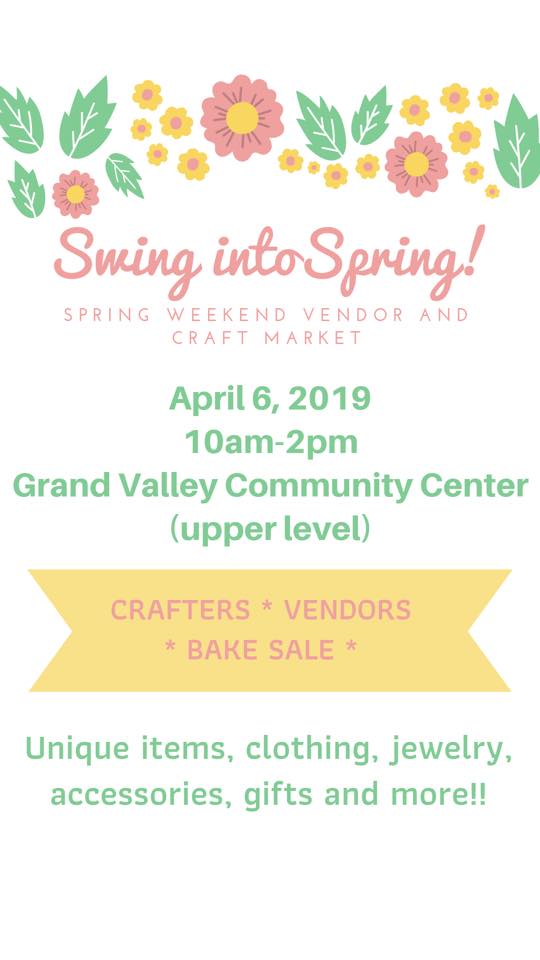 Head to the Grand Valley Community Centre on Saturday for the Swing into Spring Craft Market. You will be able to purchase hand made crafts, baked good and items from an assortment of vendors. The market will be open from 10:00 am – 2:00 pm go to the Facebook event page for more details.