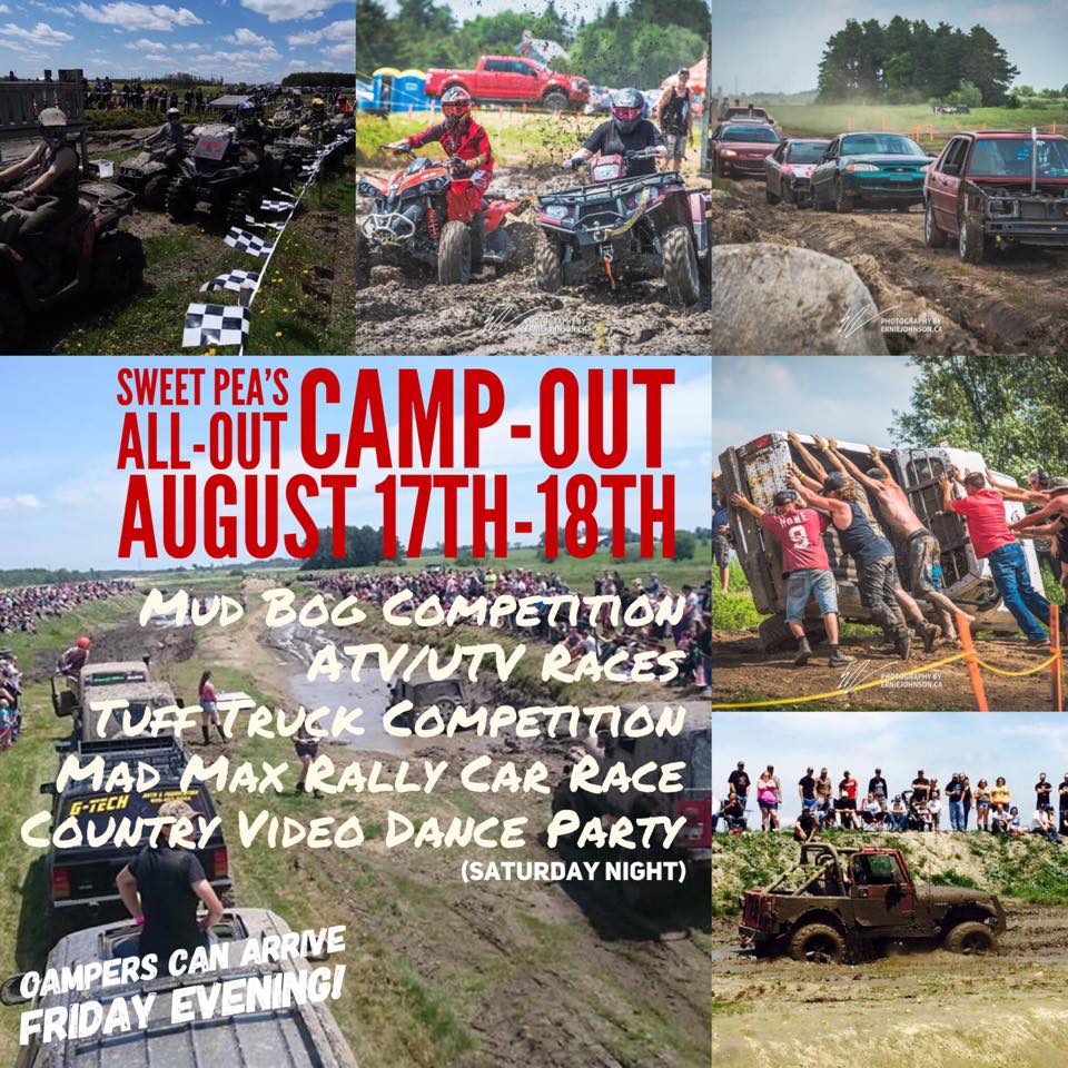 Sweet Pea’s All Out Camp Out is this weekend for their Summer Mud Bog. You can camp on site Friday and Saturday nights. The Mud Bog will run Saturday and Sunday starting at 9:00 am Saturday. Go to the Facebook event page for more details about the weekend.