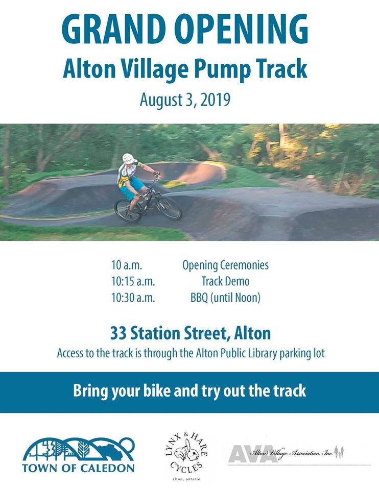 The Alton Village Pump Track Grand Opening will be on Saturday at 10:00 am the day will start with a ribbion cutting followed by a track demonstration and a barbecue. Also remember to bring your bike to checkout the track for yourself. Access to the track is through the Alton Public Library parking lot, go to the Facebook event page for more details.