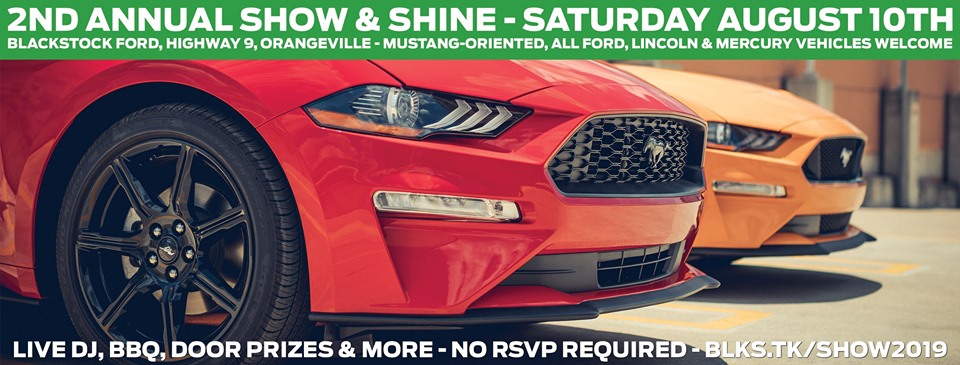 Blackstock Ford will be hosting it’s Second Annual Show and Shine at their dealership on Saturday from 11:00 am – 3:00 pm. This is a Mustang focused show but all Ford owners are welcome to stop by and show off their vehicles. There will be music, BBQ lunch and door prizes. For more information go to the Facebook event page.