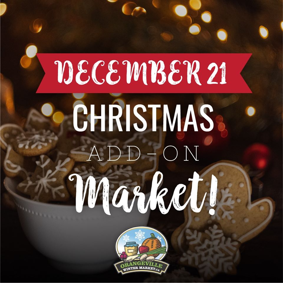 The Orangeville Farmers Market will be back at Town Hall for a Special Christmas Market on Saturday from 10:00 am – 1:00 pm. Be sure the stop by the market and pick up some great products for your holiday entertaining or a few last-minute gifts. For more details go to the Orangeville Farmers Market Facebook page.