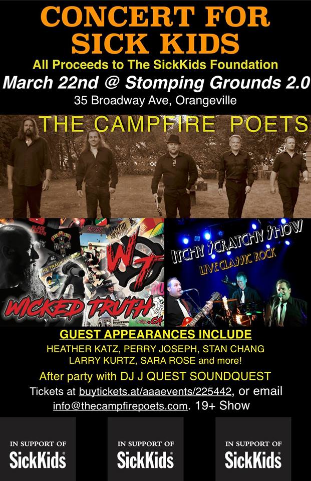 Not an event for the whole family but it supports a great cause. Head over to the Stomping Grounds 2.0 and check out the Charity Concert with performances by Wicked Truth, Itchy and Scratchy and The Campfire Poets along with other special guest performers. All money form ticket sales will go to the Sick Kids Foundation in support Sick Kids Hospital, the show starts at 7:00pm. Tickets are $30 each and you can get your tickets in advance at tickettailor.com or at the door.