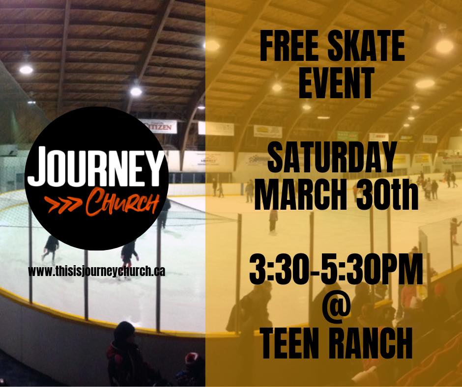 There is also a Free Skate being held at Teen Ranch on Saturday from 3:30 to 5:30 pm sponsored by Journey Church.