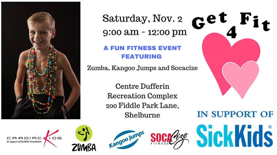 Saturday from 9:00 am – Noon go to the Centre Dufferin Recreation Complex for the Get Fit 4 SickKids Fundraiser in support of the SickKids Foundation. There will be 3 hours of fitness fun featuring Zumba, Kangoo Jumps and Socasize. For more information or to register go to fundraise.sickkidsfoundation.com.