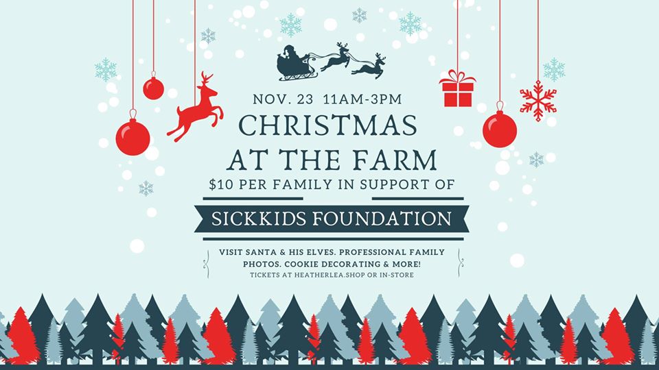 Heatherlea Farm Shoppe will be hosting Christmas at the Farm on Saturday from 11:00 am – 3:00 pm. Bring the whole family and enjoy a visit and photo with Santa, a cookie decorating station, prizes and raffles and sampling of seasonal food and beverages. Admission is $10 with the proceeds going to the SickKids Foundation. For tickets and more information go to heatherlea.shop.