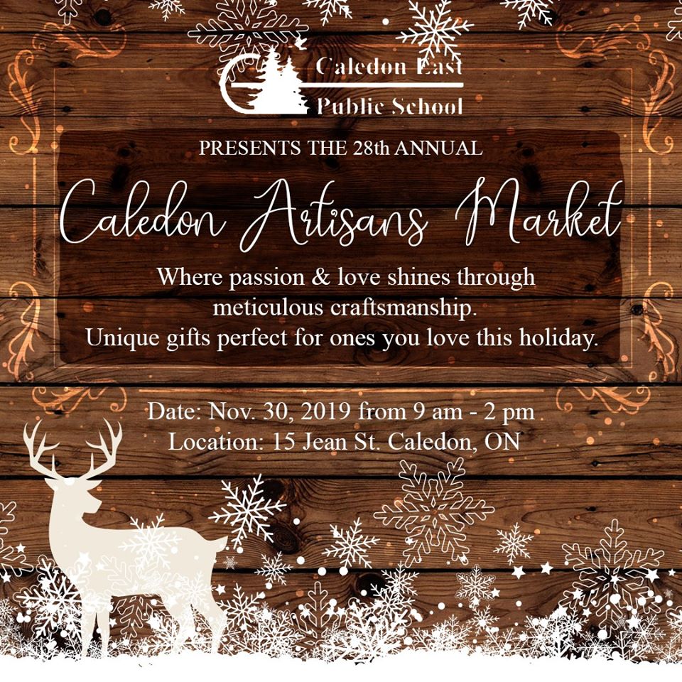 The Caledon East Public School Craft Sale is on Saturday from 9:00 am – 2:00 pm. You can pick up some holiday gifts and décor items from a great selection of local artisans and vendors. For more information go to the Facebook event page.