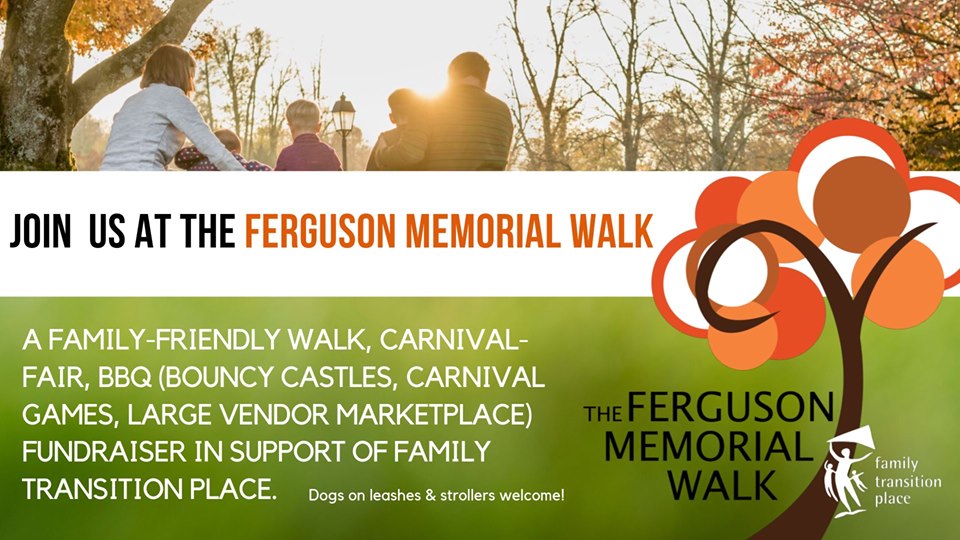 On Sunday the 7th Annual Ferguson Memorial Walk in support of Family Transition Place at Island Lake Conservation Area from 9:00 am – 3:00 pm. You can participate in the walk and enjoy the trails at Island Lake and take part in all of the family friendly activities going on including bouncy castles, carnival games, dunk tank, and local vendors. For more details about the event or to register go to fergusonmemorialwalk.com.